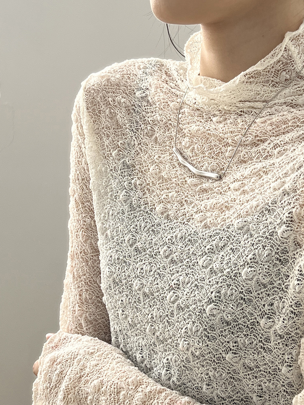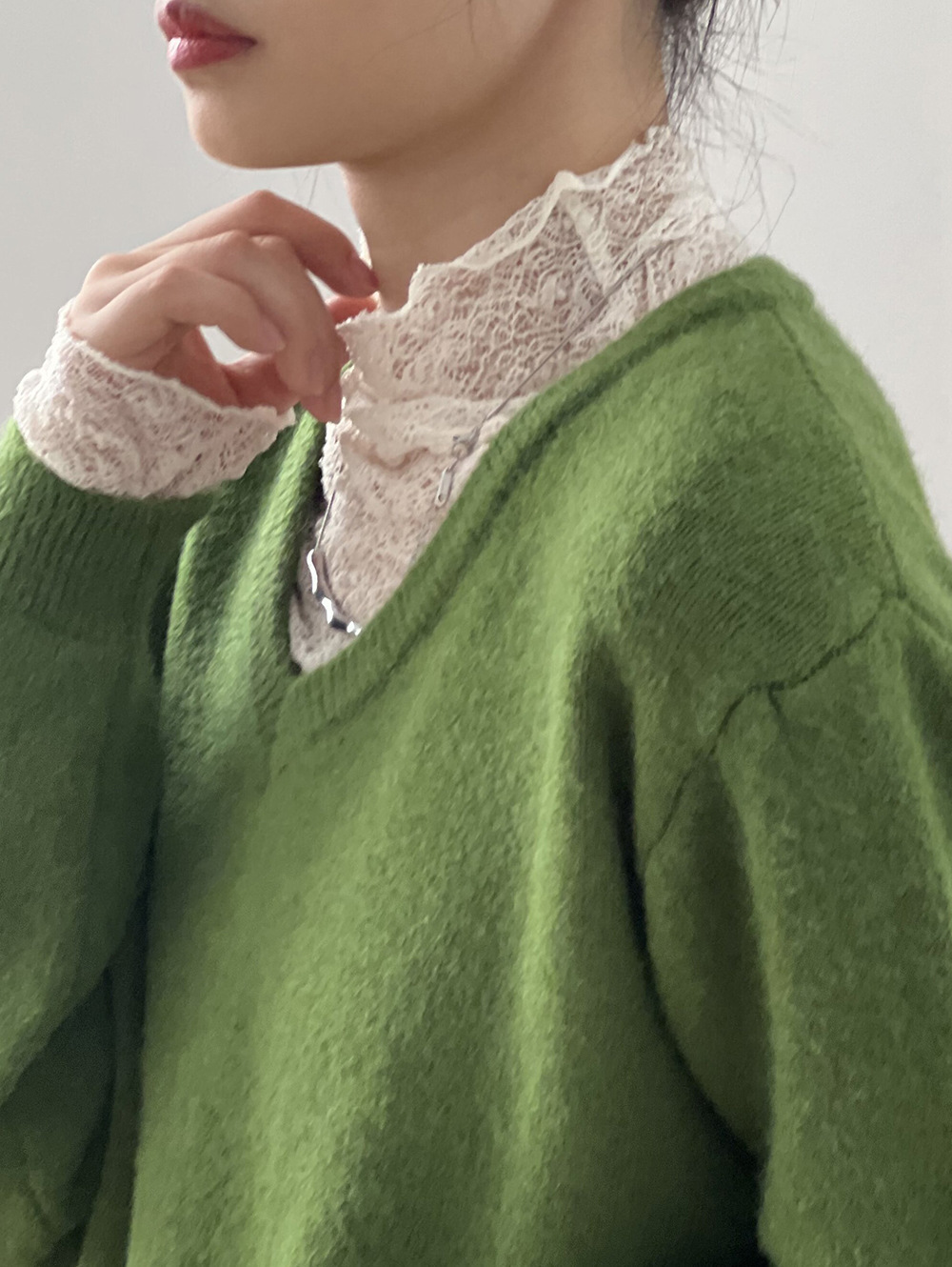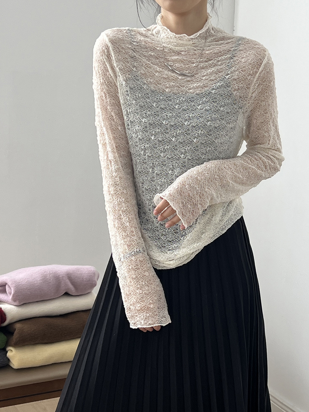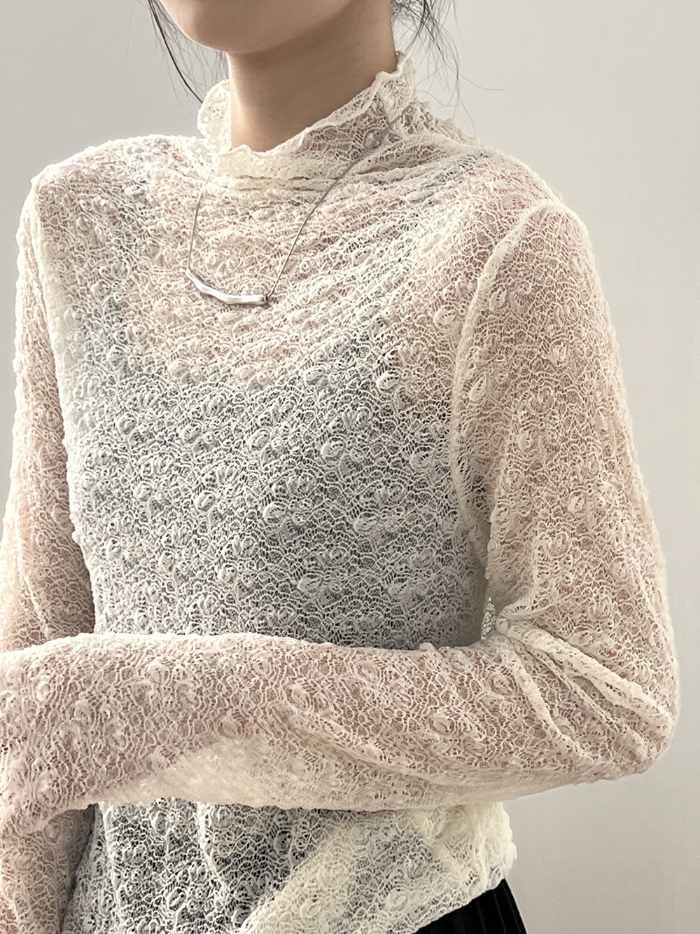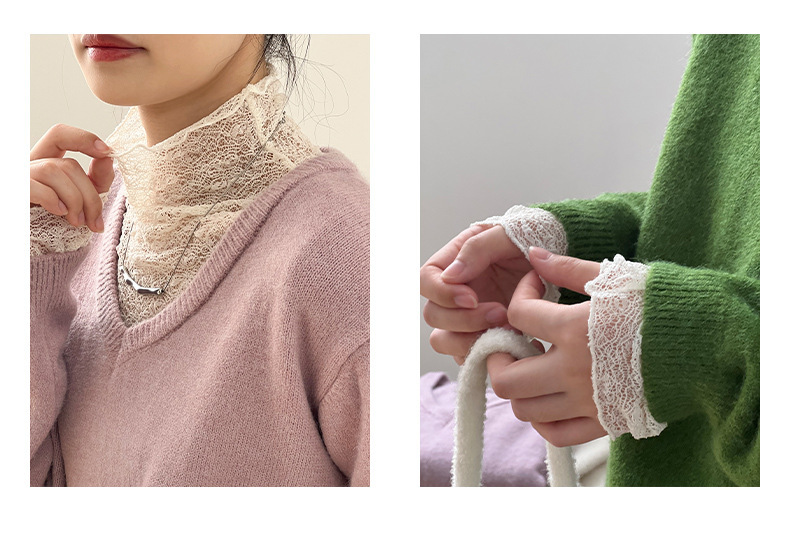 【模特兒拍攝毛衣僅為搭配,此連結拍下實物為單獨蕾絲高領打底一件】