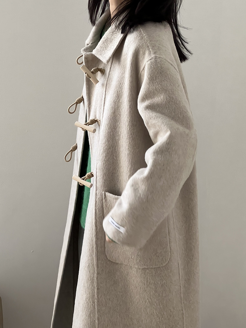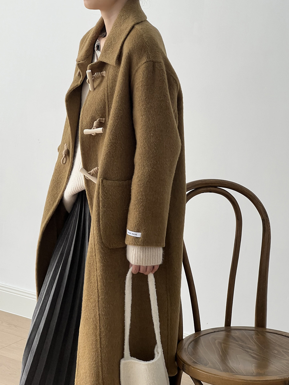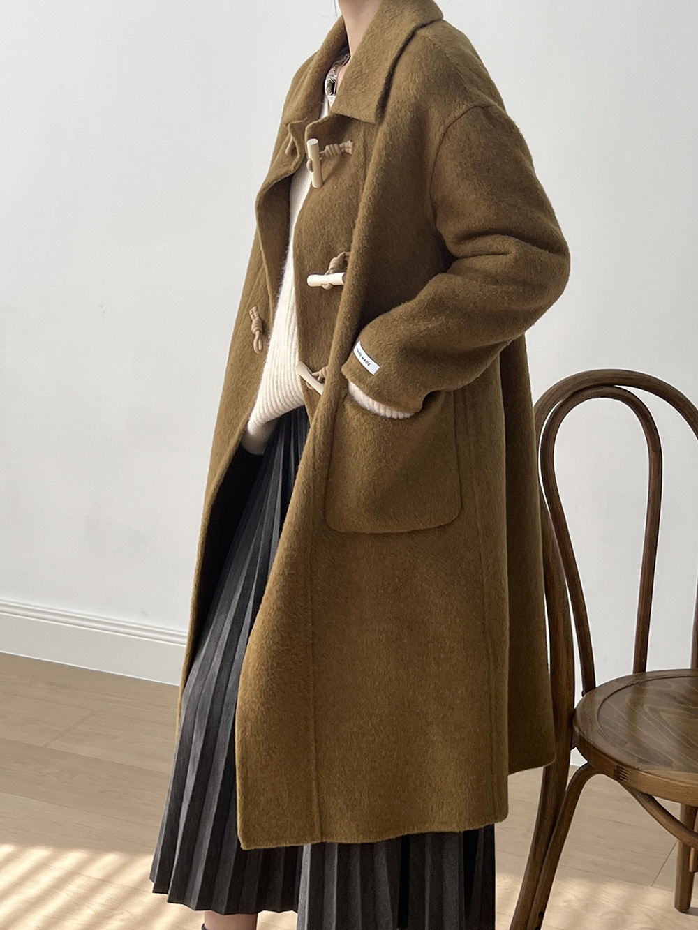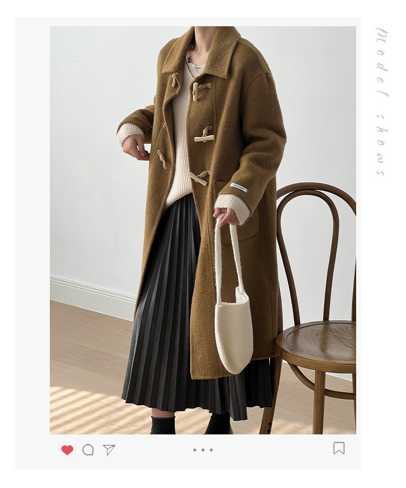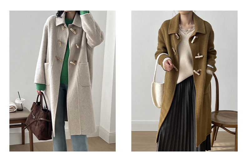 *o-ha-you*【FYSNT8038】雙面呢羊絨大衣2024冬季新款長款牛角扣毛呢外套-2色-如有需要請先諮詢