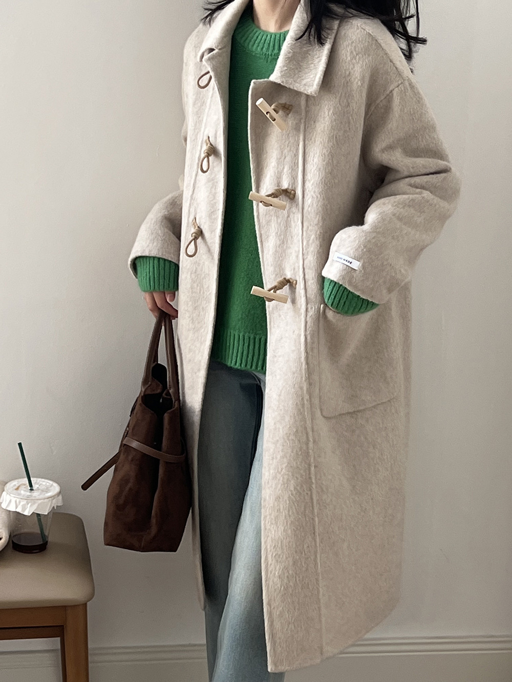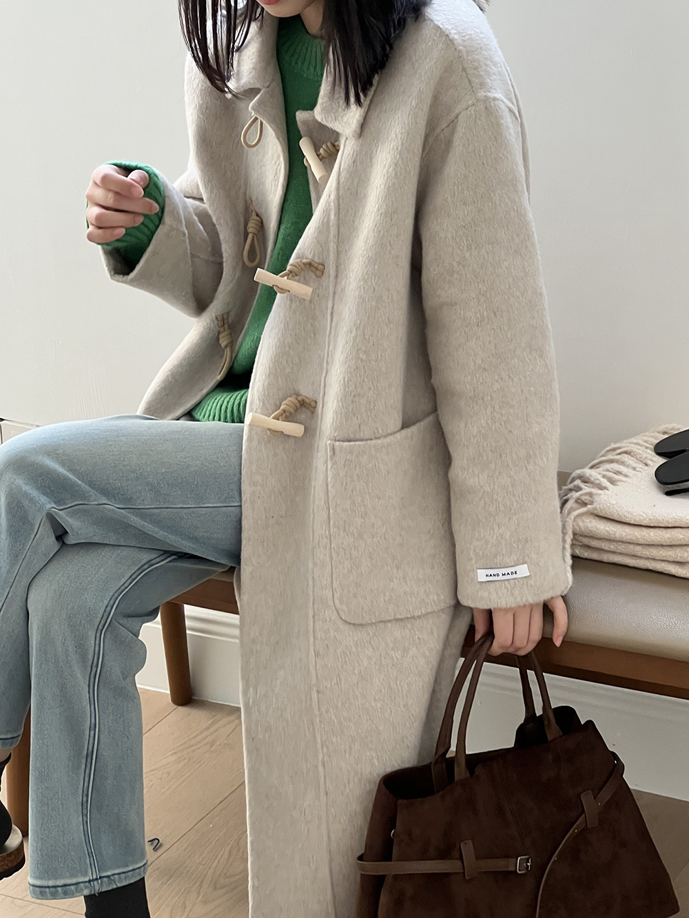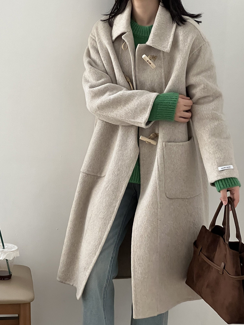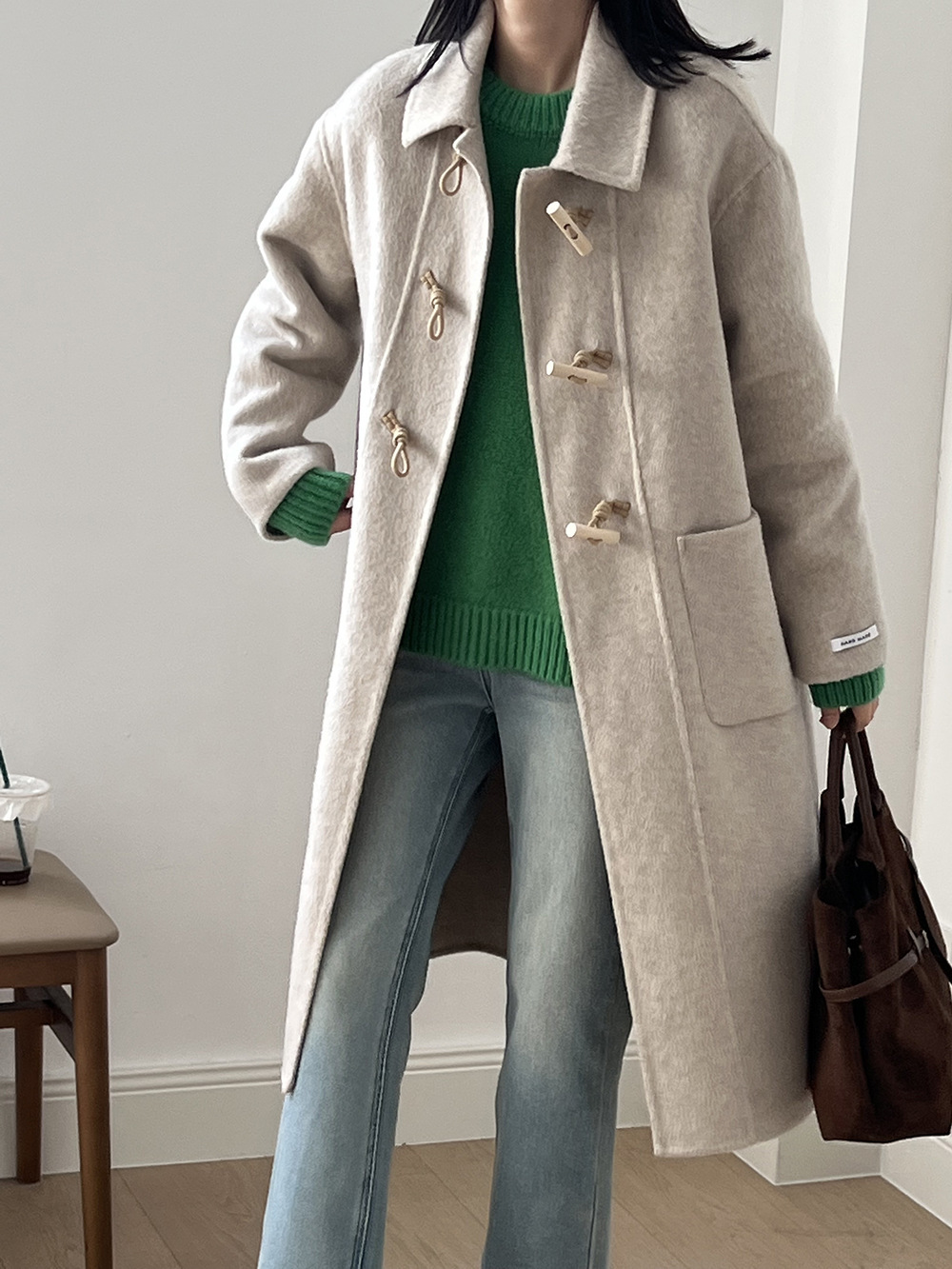*o-ha-you*【FYSNT8038】雙面呢羊絨大衣2024冬季新款長款牛角扣毛呢外套-2色-如有需要請先諮詢
