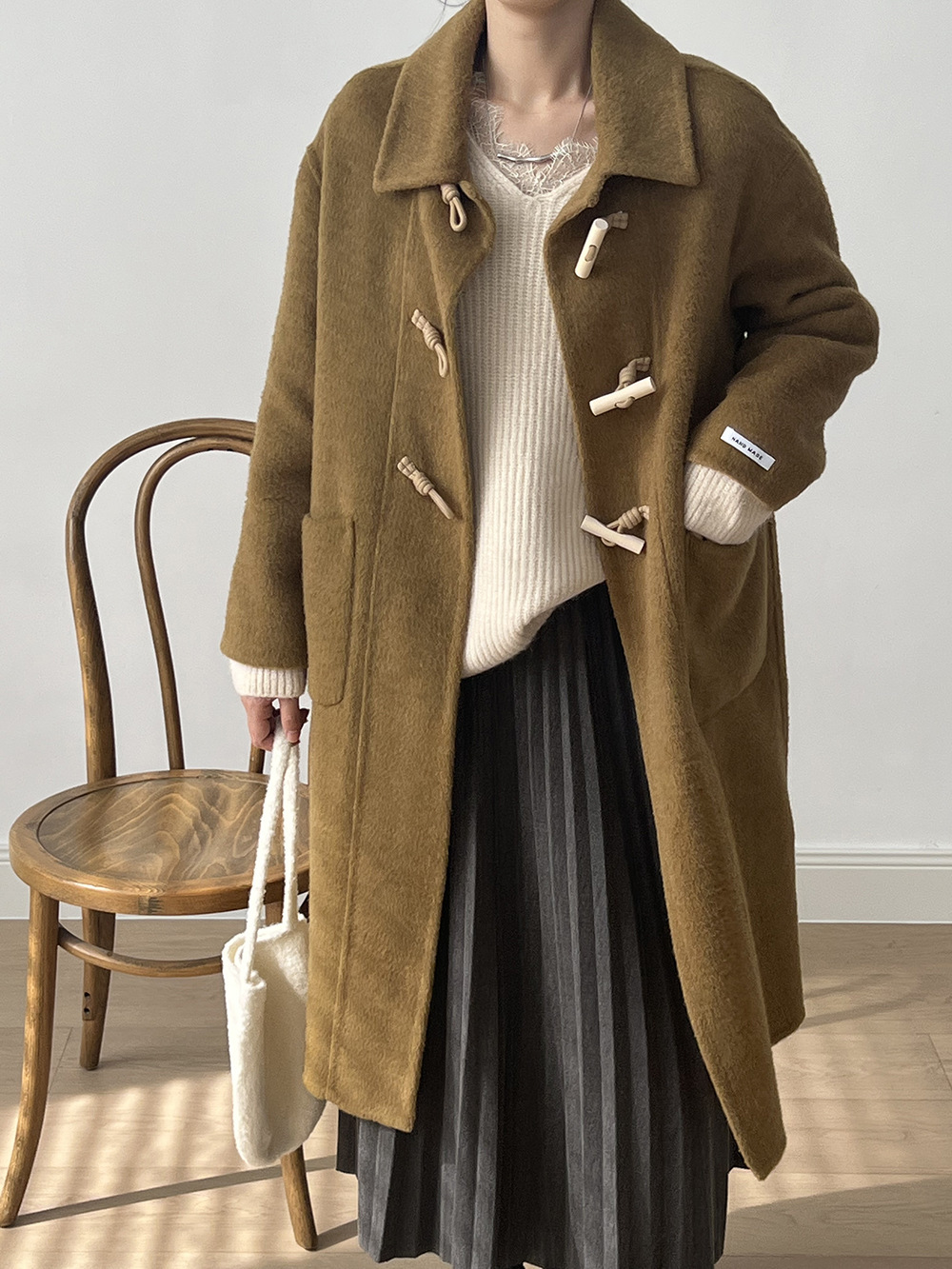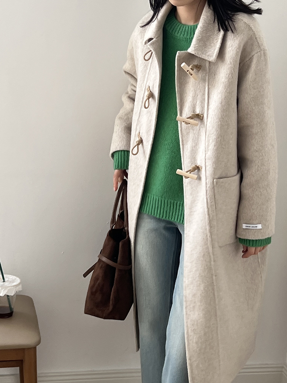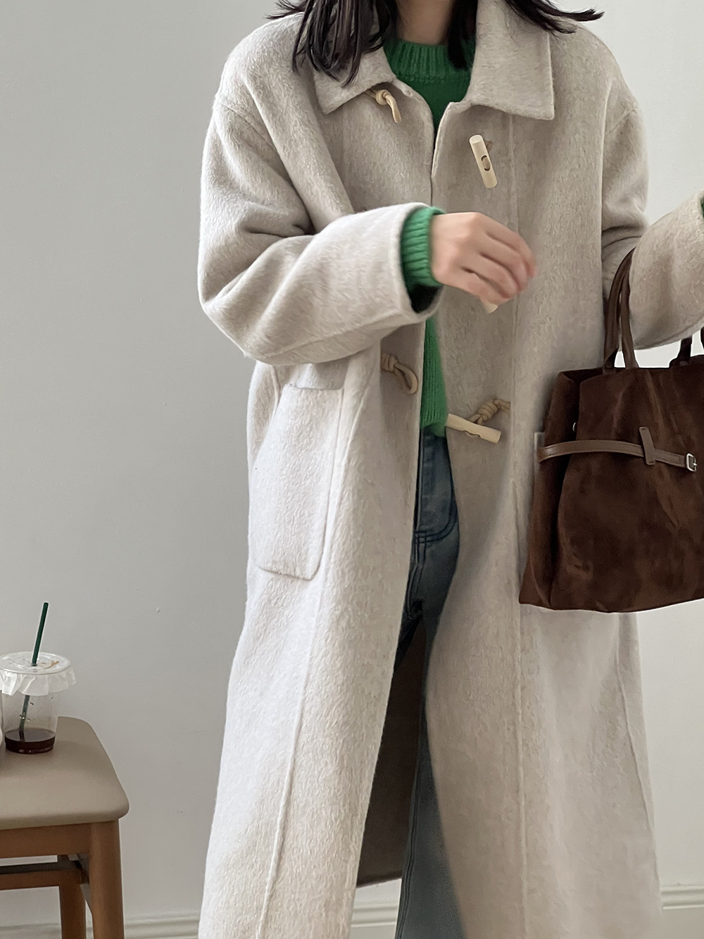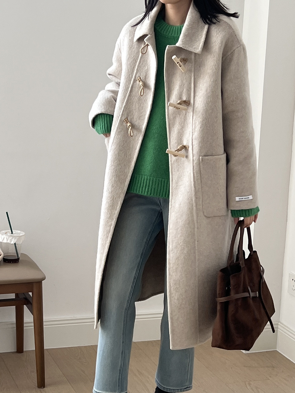*o-ha-you*【FYSNT8038】雙面呢羊絨大衣2024冬季新款長款牛角扣毛呢外套-2色-如有需要請先諮詢