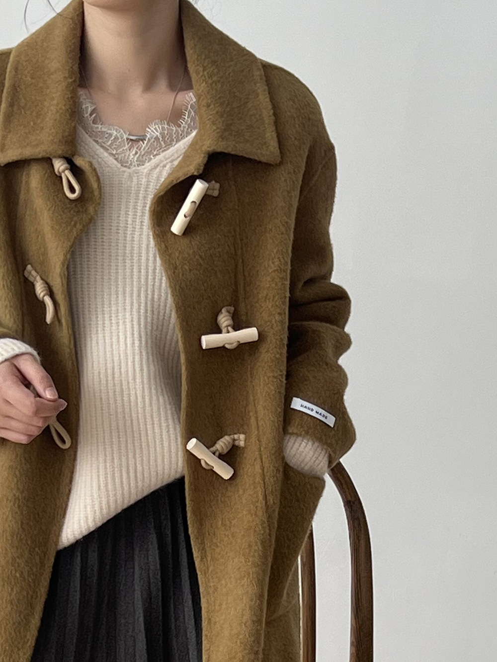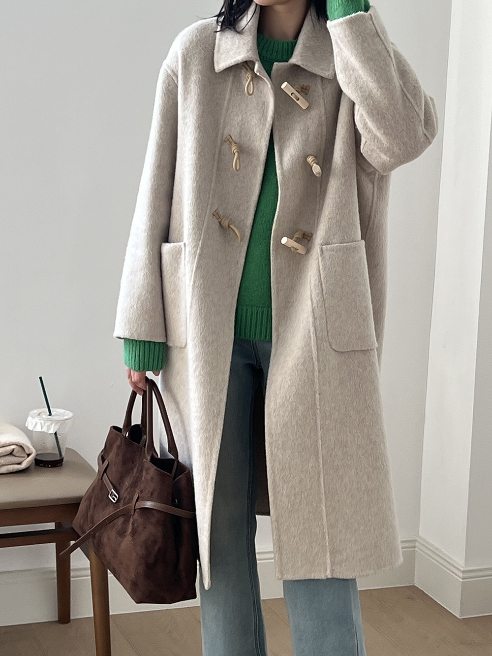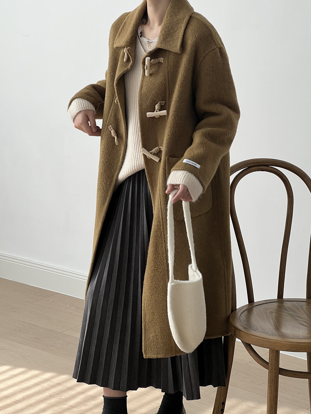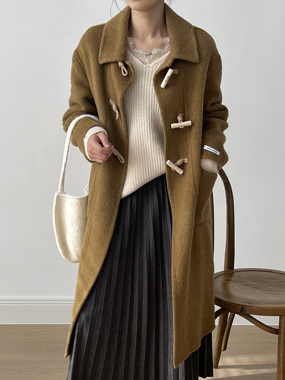 *o-ha-you*【FYSNT8038】雙面呢羊絨大衣2024冬季新款長款牛角扣毛呢外套-2色-如有需要請先諮詢